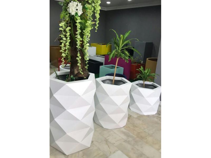 Kompozit saksılar açık ve kapalı alanlara da dekoratif bitkiler dikilebilen görsel özel üretim ürünlerdir